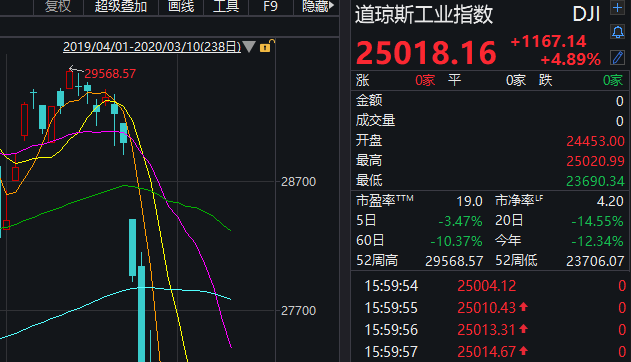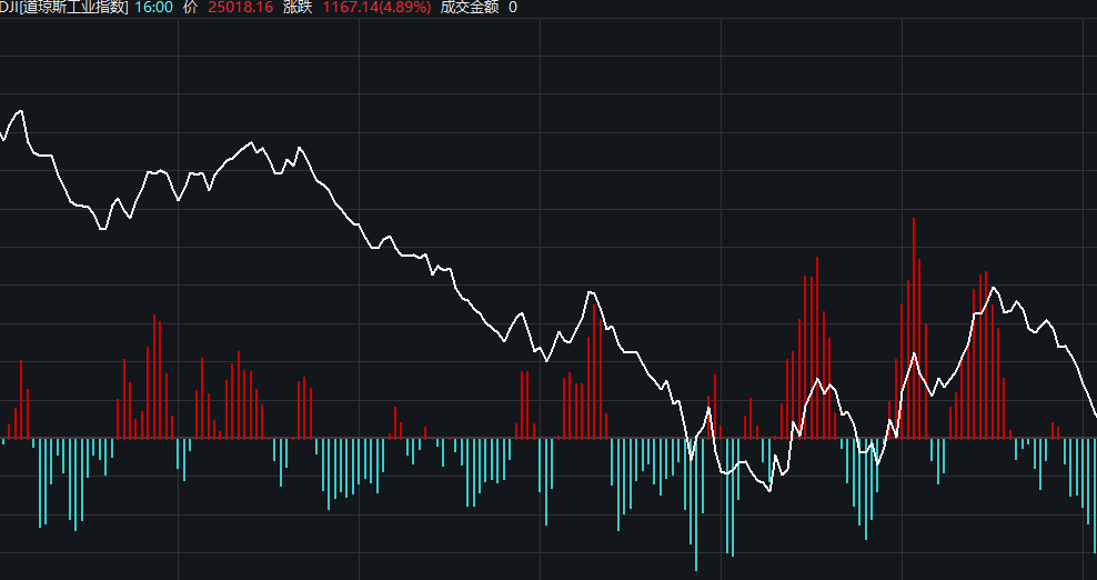 美股几大股指集体跳水,道指率先转跌,最大跌幅达到1000点,此前一度涨近4%。标普500与纳斯达克指数也随后也转跌。