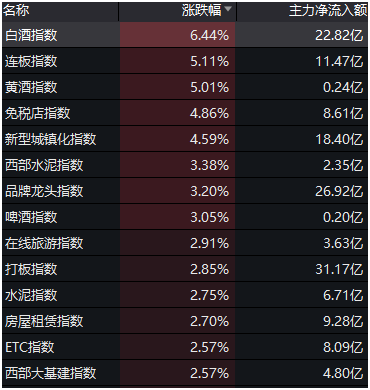 概念板块方面,白酒指数独领风骚,早盘大涨6.44%。受益于海南离岛免税新政正式实施,免税店指数早盘高开上涨近5%。近期表现亮眼的券商指数低开高走,收涨1.24%,领涨龙头光大证券继续上涨3.61%。