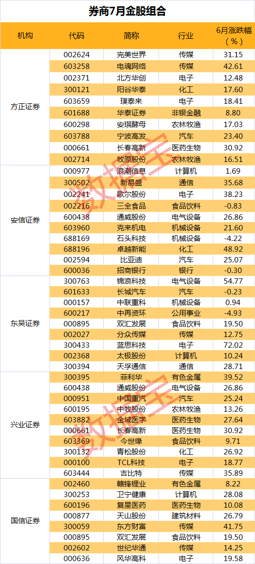 券商7月金股出炉