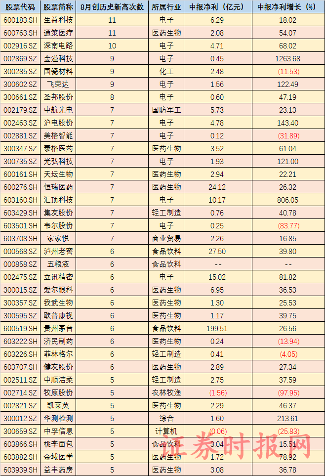 妖股不断出没的同时,不少业绩确定性较强,或者业绩增长预期较强的个股连续创新高。数据显示,8月份以来,一共有75股股价创历史新高,其中,生益科技、通策医疗、深南电路等不断刷新历史新高纪录。
