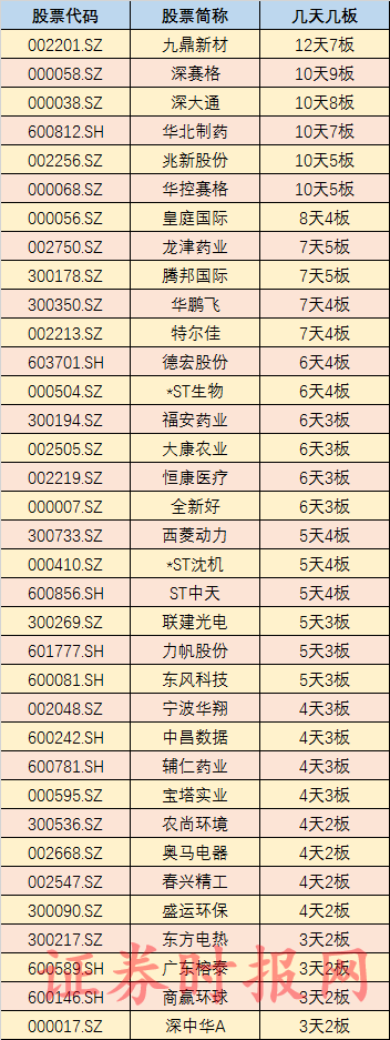 连板个股方面,数据显示,自8月中旬以来,不少个股出现连板走势,其中,九鼎新材12天7板,是8月中旬以来最早出现强势连板的个股。随后,中央支持深圳建设先行示范区,把深圳推上了一个更高的位置,深圳本地股不断走强,深赛格10日9板,表现最为强势,深大通10天8板,表现也比较强势。
