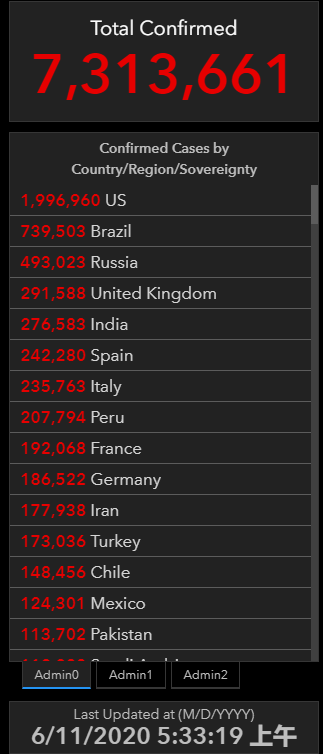 根据美国约翰斯·霍普金斯大学实时统计数据,截至北京时间6月11日5时33分,美国新冠肺炎确诊病例逼近200万例,死亡病例超11万。