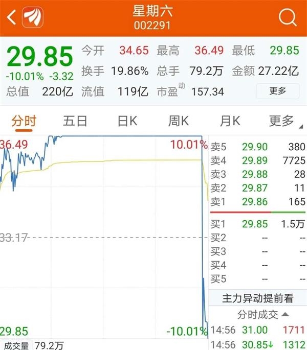 第五个涨停板终于撑不住了,最后8分钟,星期六公司股价上演天地板,市值蒸发49亿。