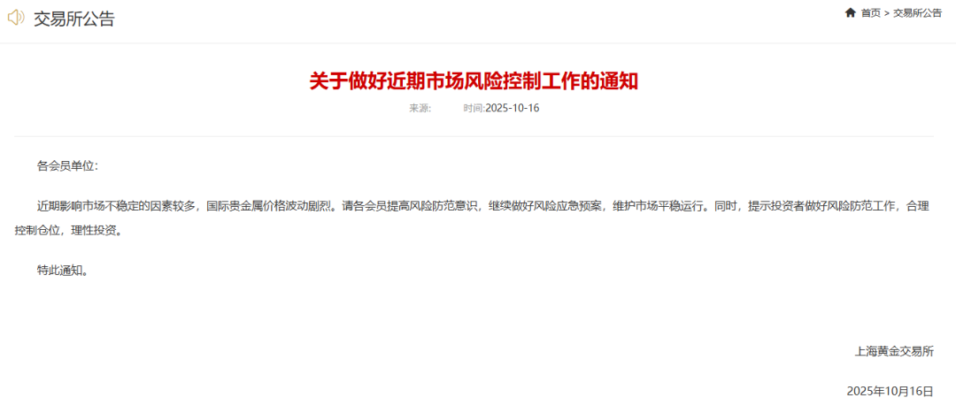 值得一提的是,上海黄金交易所今日发布通知称,近期影响市场不稳定的因素较多,国际贵金属价格波动剧烈。请各会员提高风险防范意识,继续做好风险应急预案,维护市场平稳运行。同时,提示投资者做好风险防范工作,合理控制仓位,理性投资。