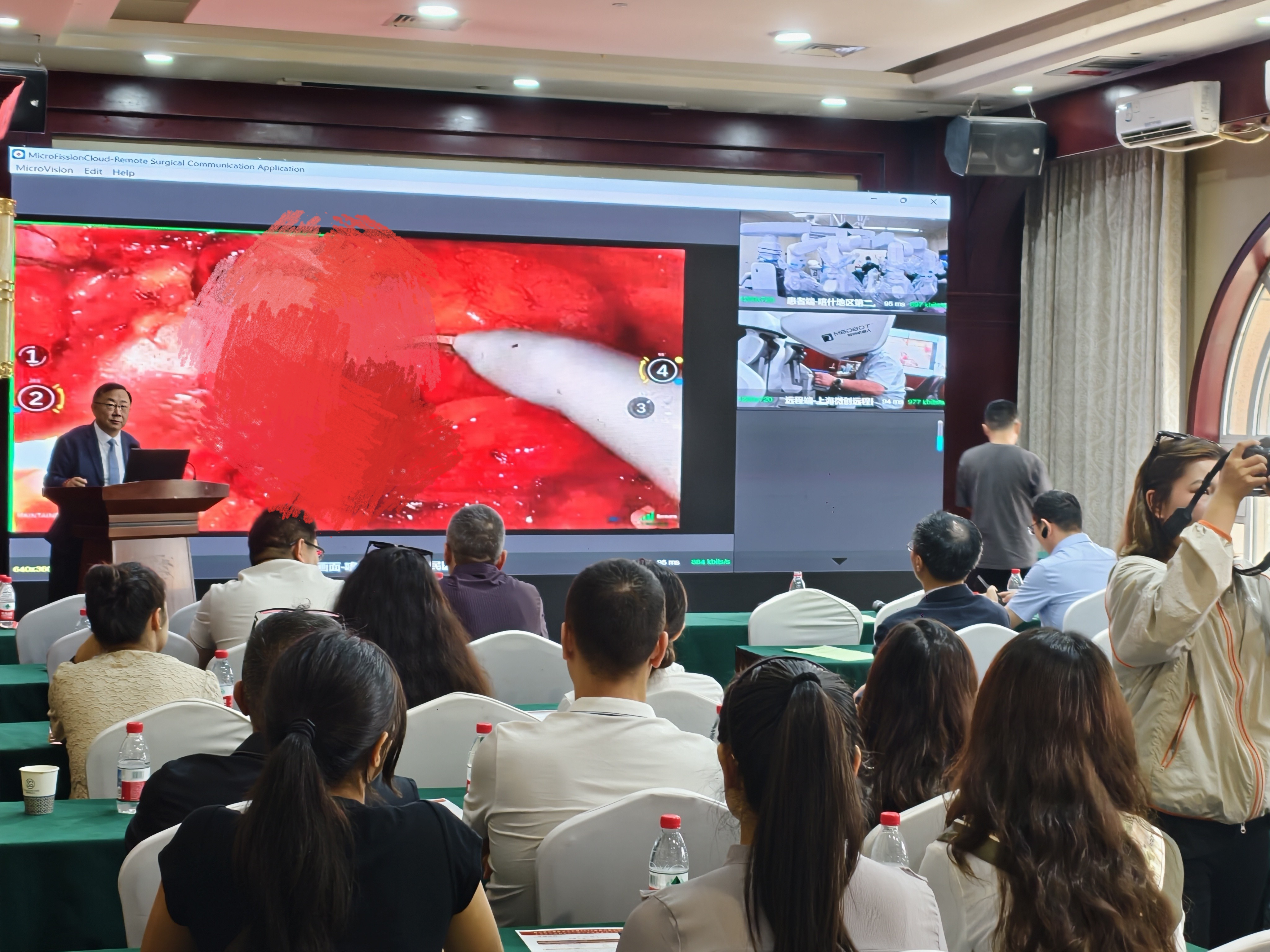 在8月7日第三届沪疆医学大会喀什现场,一台跨越5000公里的手术正在同步开展:远在上海的仁济医院泌尿科主任潘家骅通过5G远程机器人对喀什二院的病人进行手术,仁济医院副院长、泌尿科主任医师薛蔚在现场作互动交流。