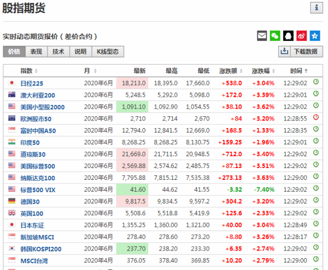 周一,A股因清明节休市,外围股市则集体上涨。截止北京时间12点半左右,美国三大股指期货涨幅均超3%,欧洲股指期货也普涨,德国30、欧洲50指期货涨幅也超3%。