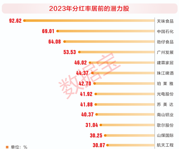 分红比例较高是潜力股的另一个标签。2021年至2023年,潜力股现金分红比例中位数分别达到30.33%、35.56%和41.88%。中国石化、劲仔食品、广州发展、建霖家居、珠江啤酒、光电股份、苏美达等个股连续3年现金分红比例超过40%;天味食品、珀莱雅、山煤国际、航天工程、明星电力等个股连续3年现金分红比例超过20%。