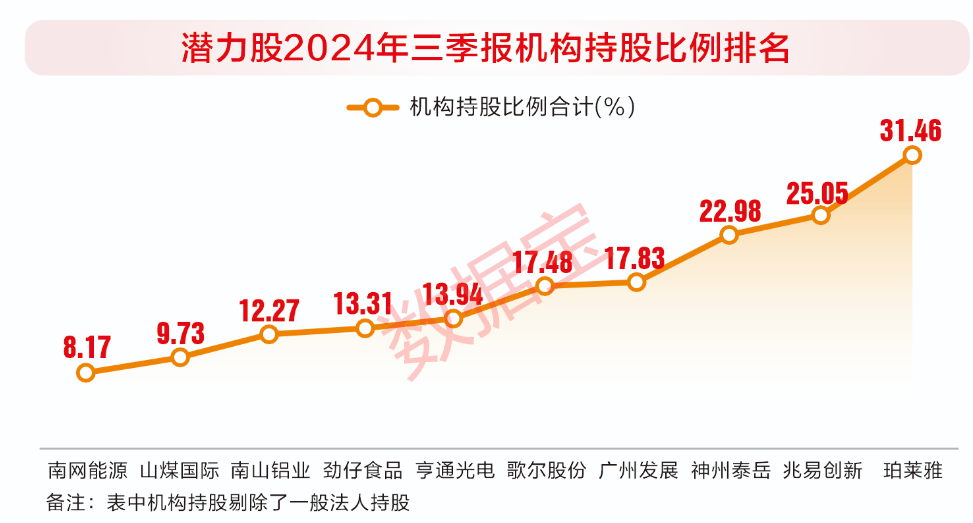 潜力股普遍获机构重仓,其中珀莱雅、兆易创新、神州泰岳、广州发展等个股机构持股比例超10%。