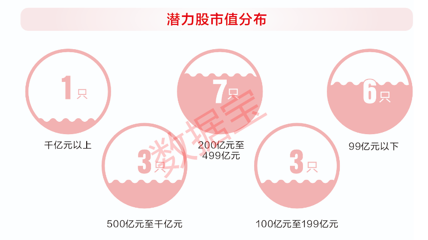 规模方面也体现出均衡特征,潜力股中既有逾7000亿元市值的中国石化,也有明星电力、光电股份、建霖家居等多只市值低于百亿元的个股,市值中位数不到230亿元,中盘成长属性较强。