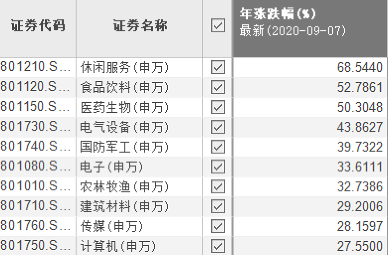 截至昨日收盘,今年以来申万休闲服务、食品饮料、医药生物指数涨幅均超50%,军工、TMT等板块总体表现出色,而消费、医药、科技正是基金等机构长期看好的主要领域,受资金推动影响较大。