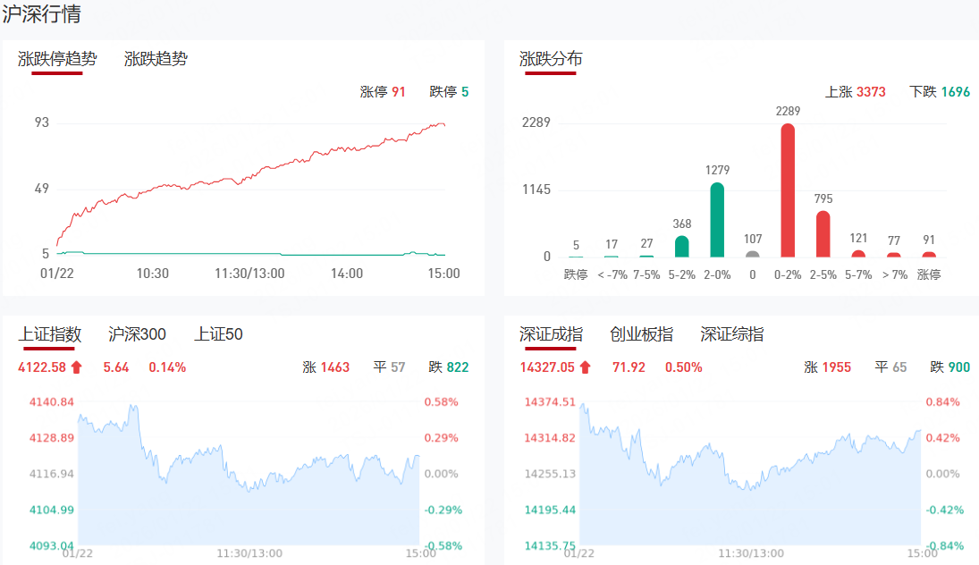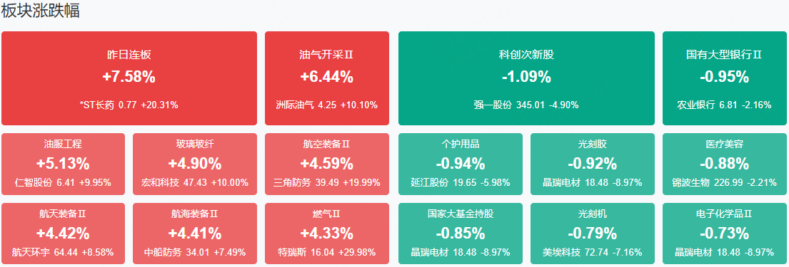 板块方面,商业航天、油气开采、煤炭、PCB等板块表现活跃,银行、贵金属、芯片产业链等板块表现落后。截至收盘,沪指涨0.14%,深成指涨0.5%,创业板指涨1.01%。