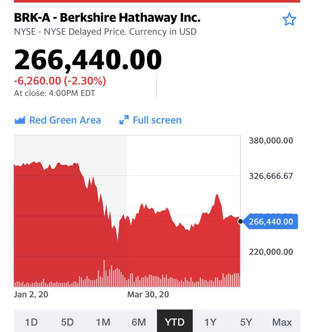 伯克希尔·哈撒韦近期股价走势