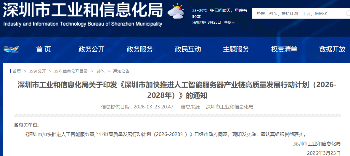 消息面上,《深圳市加快推进人工智能服务器产业链高质量发展行动计划(2026—2028年)》提出,面向国内外市场需求,因地制宜打造“光伏/海上风电+储能+绿电直连”零碳数据中心标杆示范,助力算力需求就地消纳、绿色电力高效利用。创新电源储能参与虚拟电厂解决方案,探索源网荷储一体化商业模式。