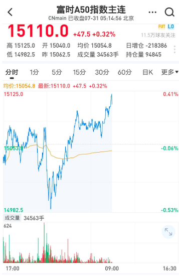 分析人士指出,美国二季度GDP数据略显夸张,但是符合市场的预期。美股在开盘消化该消息后便开始反弹,纳斯达克指数收盘更是翻红,收盘涨0.43%。富时A50指数也逆转下跌势头,收盘涨0.32%。