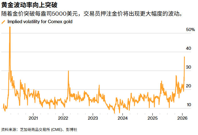 从期权市场的交易逻辑来看,5000美元关口的突破触发了罕见的“伽马挤压”效应。由于金价上涨的速度超出了多数期权卖方的预期,大批做空波动率的金融机构被迫在现货和期货市场大规模回补头寸以对冲风险,这种被动买盘与市场追涨情绪形成了共振,进一步推升了金价。