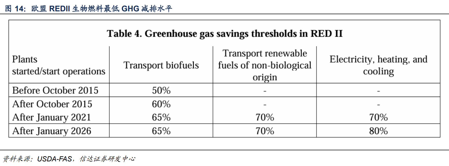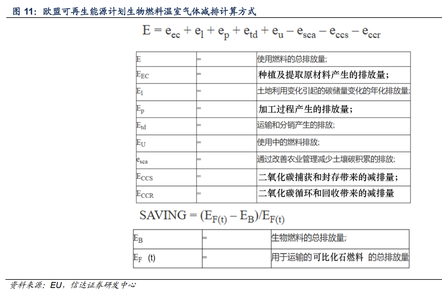 对于生物燃料的减排量,欧盟可再生能源计划设定了不同生物燃料的温室气体减排量标准,计算方式大体如下: