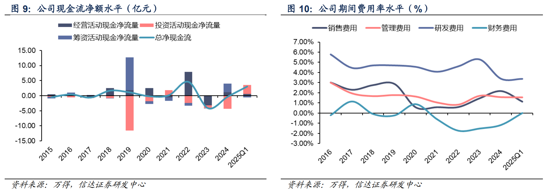 现金流方面,除 2017 年、2021 年和 2023 年经营净现金为负,其他均保证正值,其中,2021 年主要受公司美山新厂投产,增加存货储备所致及货款跨年收讫所致。2023 年主要受在欧洲建设自主销售网络,前期业务启动所致。随着新项目投产,2025Q1 公司整体净现金流保持为正。