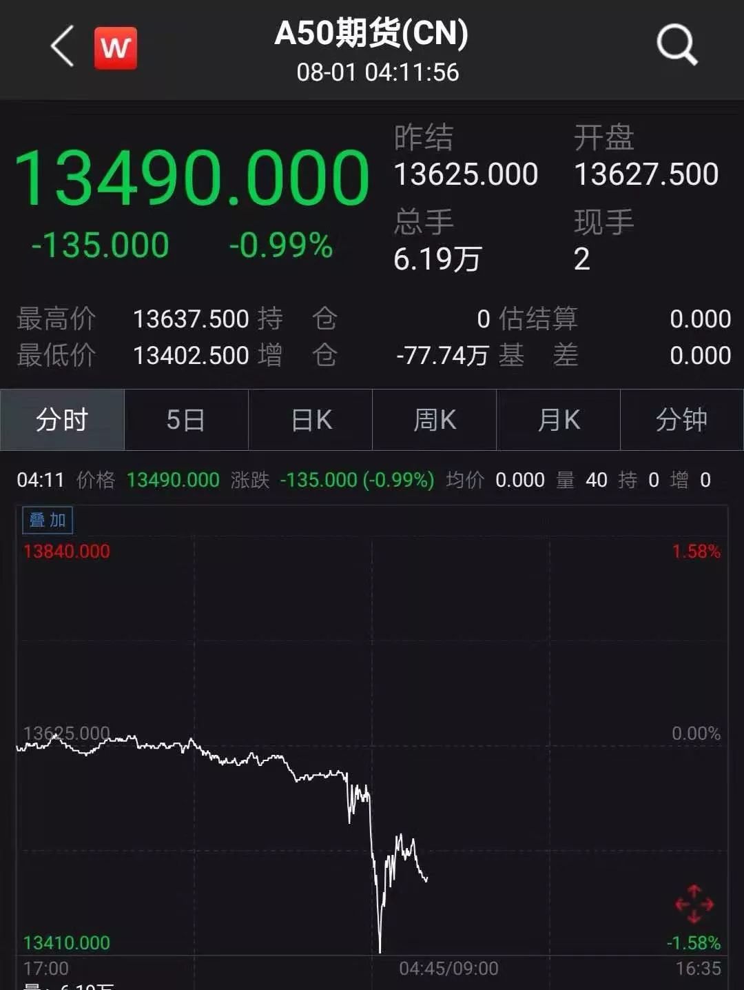受降息消息影响,A50期货大幅跳水近1.58%,之后有所回升。但跌幅仍在1%左右。