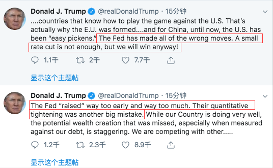 特朗普强调称,欧洲央行和其他一些国家货币政策旨在让各自的货币贬值,并呼吁美联储以降息作为回应。
