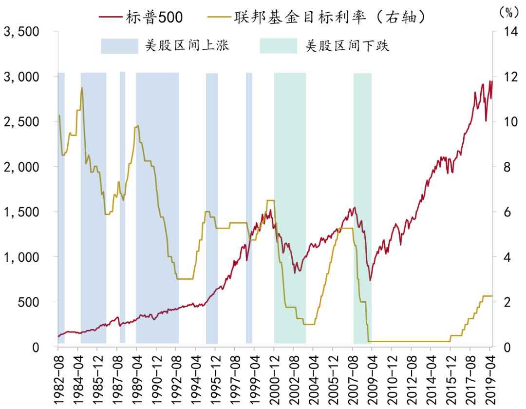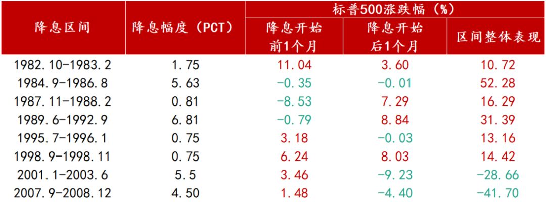 自上世纪80年代初以来,共有八轮降息周期,分别始于1982、1984、1987、1989、1995、1998、2001及2007年。每轮降息的持续时间与利率下调幅度均不相同,而在降息周期中,美股也并非全表现为上涨态势,在2001和2007年这两轮降息周期中,反而出现了大幅下跌。