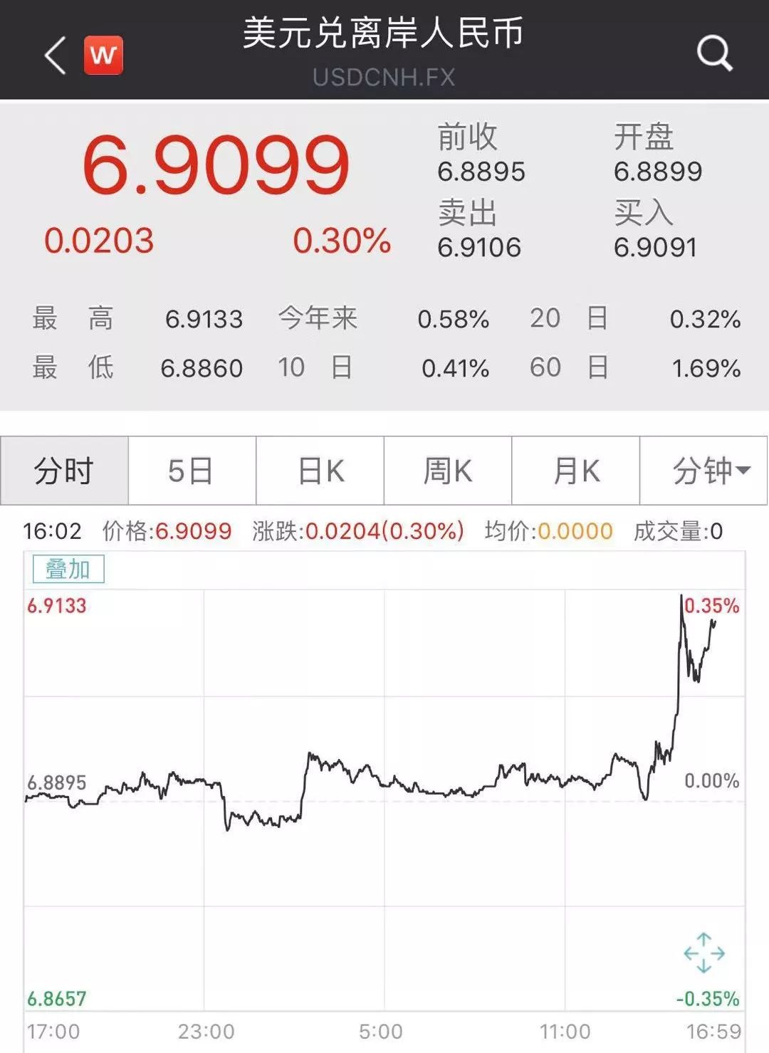 美联储决议后,非美货币全线跳水。欧元兑美元、英镑兑美元、离岸人民币兑美元短线下跌。