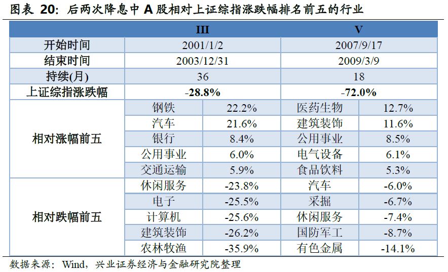 美联储降息均开始于美国经济出现内忧外患之时。而此时中国也难以独善其身,可能同样面临经济处于底部、遭受外部冲击的局面,此时具有良好业绩支撑和防御属性的行业表现较好。