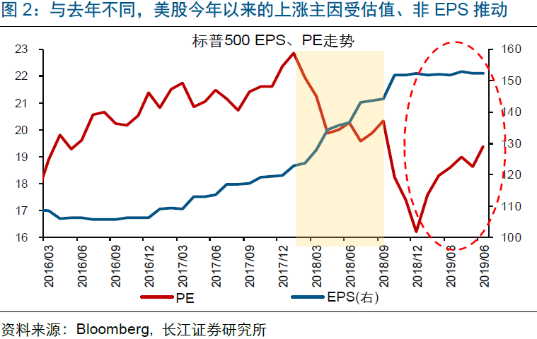 年初以来,美股在EPS增速下滑背景下屡屡刷新历史新高,主要与美联储降息预期大幅升温、带动估值提升有关。年初至今,美股三大股指自低位反弹超15%,并多次刷新历史新高。美股反弹与EPS关联较小,主要受估值提升推动。