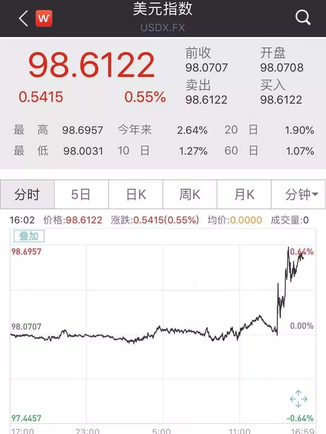 黄金美股竞相跳水、美元指数急涨创两年新高