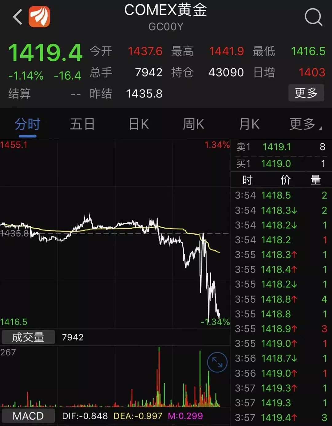 来看看美股的精彩表演。截至收盘,道指跌1.23%,纳指跌1.19%,标普500指数跌1.09%。其中,道琼斯指数盘中一度下跌超500点。
