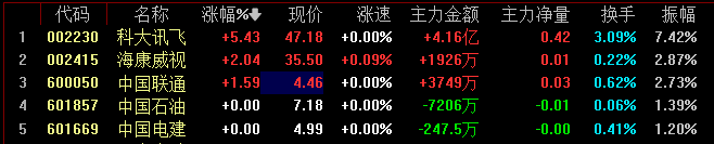 具体来看,央企创新驱动ETF(515900)上涨0.55%。具体持仓个股来看,科大讯飞涨5%,海康威视涨超2%,中国联通涨超1%。