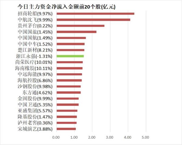 招商轮船主力资金净流入4.34亿元居首