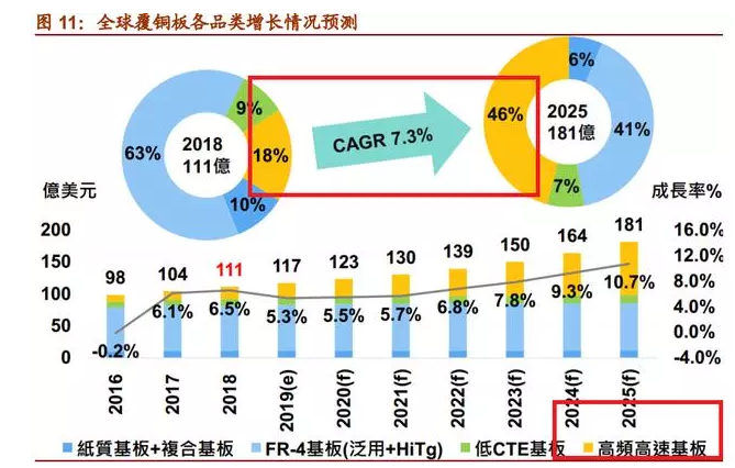 通信和服务器/存储器代表的高多层市场是空间最大、增长最快的市场。另外,相关的高端覆铜板仍依赖进口,A股替代机会大。