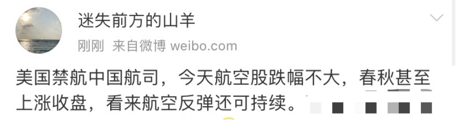 也有网友认为这意味着航空股的反弹还可持续。