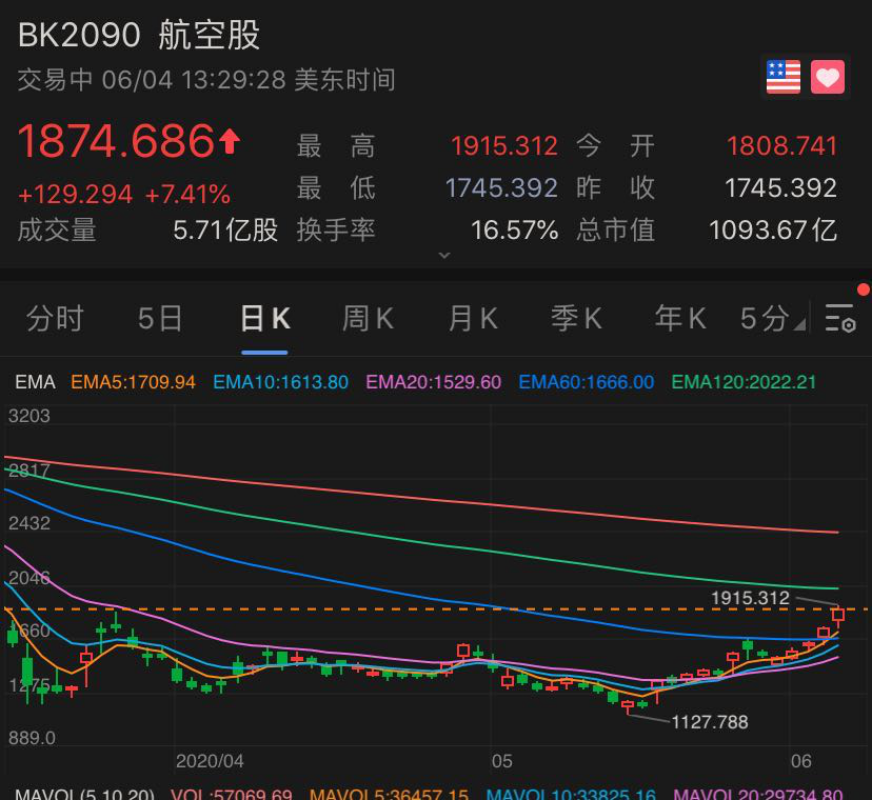 早在昨日,多支美国航空股就已经开启了上涨模式,这主要是美国对中国航司实施了“禁飞令”。