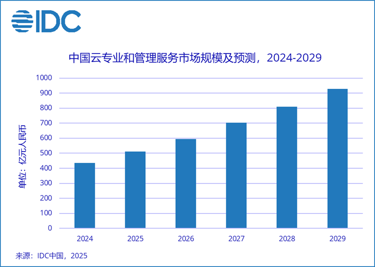 国际数据公司(IDC)最新发布的《中国云专业与管理服务市场(2024下半年)跟踪》报告显示,2024下半年中国云专业与管理服务市场整体收入规模达到235.6亿元人民币,同比增长达11.2%。整体市场预计将从2024年的435.3亿元人民币增长到2029年的 927.9亿元人民币。多云、混合云/跨云架构和AI的日益普及推动了市场增长。
