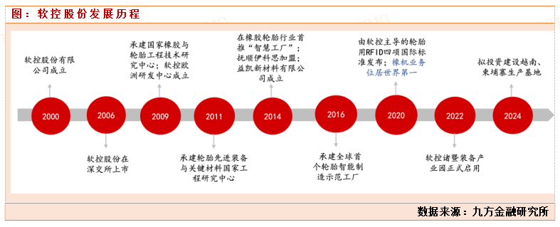 软控股份于2000年成立,06年上市。依托青岛科技大学发展起来的国际化高科技企业集团。软控主营业务和技术优势集中在橡胶机械领域,是国内最大的橡胶设备企业,业务规模长期位居世界前三。公司深耕橡胶机械行业二十余年,持续把握下游轮胎扩产和行业智能化、绿色化 发展机遇,持续技术创新和拓宽产品种类,目前能够为轮胎生产80%环节提供智能化装备及系统软件服务,橡胶机械业务规模连续两年位居世界第一。受益于中国轮胎出海浪潮,下游轮动企业产能不断扩张,公司订单需求也持续高增。