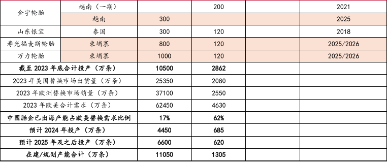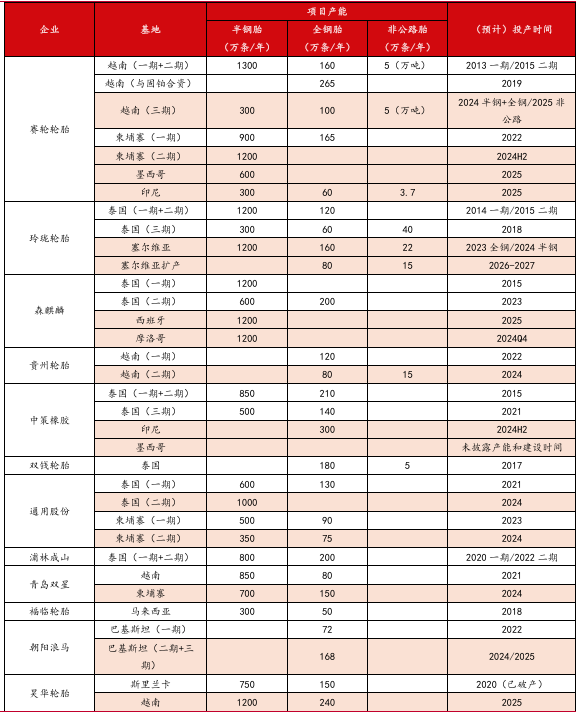 图:轮胎行业企业产能建设情况