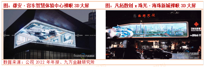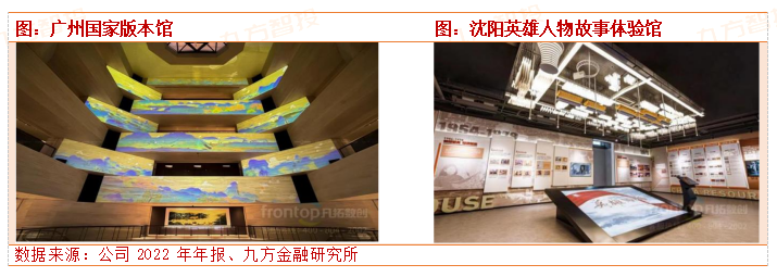 3D制作技术赋能数字展馆。数字一体化综合服务主要应用在文化文博、科教科普、智慧城市、产城文旅,具体包括文化展馆、博物馆、科技馆、特色小镇等。公司拥有强大3D制作技术和创意、策划能力,可根据客户的个性化需求提供定制化的数字一体化解决方案。2022年公司参与多个重点展馆的建设,如国家版本馆广州分馆、贵州六盘水智慧农旅数字生态体验中心等。