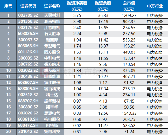 注:近5日融资净买额居前的电力设备股(截至4月28日数据)