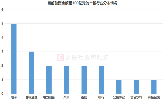 注:目前融资余额超100亿元的个股行业分布情况(截至4月28日数据)