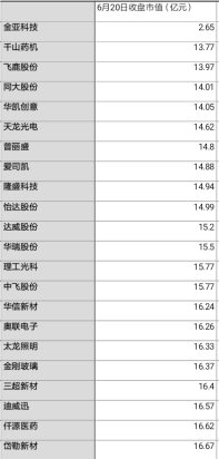 《华夏时报》记者根据Wind数据统计发现,6月20日收盘时市值低于20亿元(不包括20亿元)的68家创业板公司中,有20多家公司股价涨停。