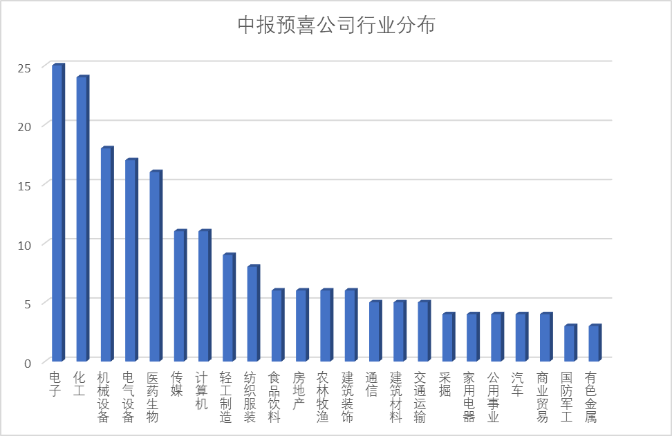 从行业特征看,预喜的205家公司中,电子、化工行业分别有25家和24家公司,而机械设备、电气设备、医药生物行业也分别有18、17和16家公司。而业绩预忧公司较多的行业包括汽车、计算机、有色金属等行业,均在15家以上。