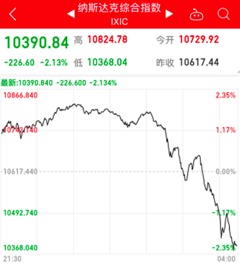 昨夜美股尾盘上演惊魂大跳水。道琼斯工业指数从高处跳水逾500点,收涨0.04%,纳斯达克指数盘中创下历史新高后一路下跌,最终收盘跌2.13%,标普500指数下跌0.94%。