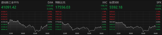 ►美东时间周三,在英伟达财报的压力下,三大指数集体收跌,以科技股为主的纳指跌跌约200点。贝莱德认为美国整体经济将放缓但不会衰退。截至收盘,道琼斯指数跌0.39%,纳斯达克指数跌1.12%,标普500指数跌0.6%。热门中概股普跌,纳斯达克中国金龙指数跌3.57%。