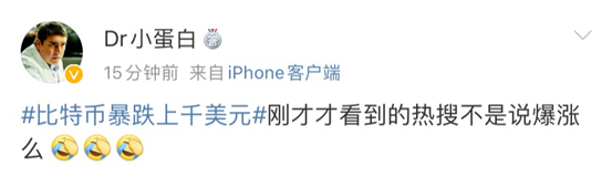 网友惊呼,刚在热搜上看到比特币暴涨没多久,咋就又大跌了?