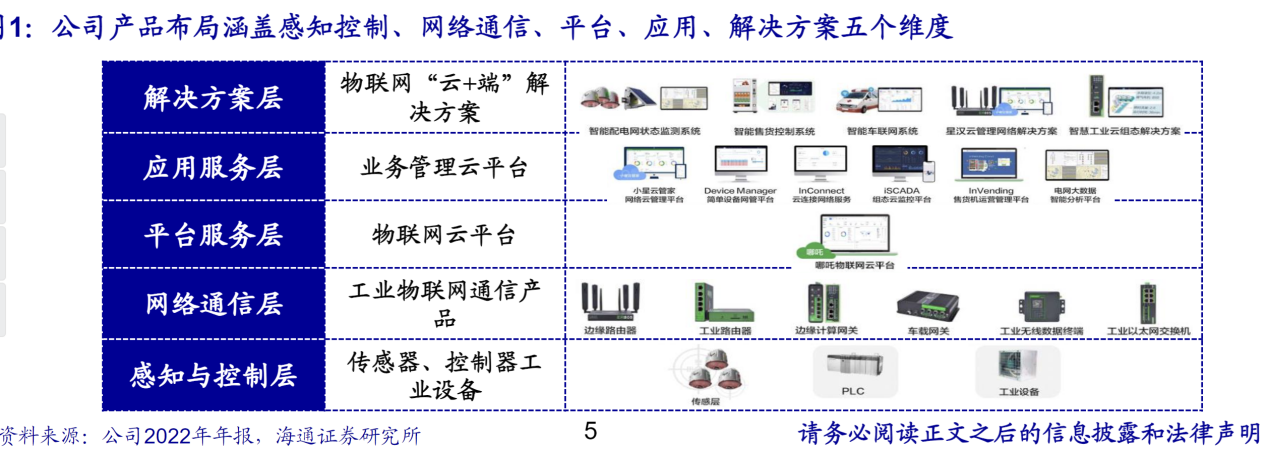 底蕴深厚,国内工业物联网通信龙头企业,提供“云+端”一体化解决方案。公司主营为客户提供工业物联网通信(M2M)产品以及物联网(IoT)领域“云+端”整体解决方案。公司现已发展出涵盖了感知控制、网络通信、平台、应用、解决方案五个维度的产品矩阵,并专注于解决智能电力、智能制造、智慧零售、智慧城市四大行业应用难题。公司已建立独立完整的研产销售平台,并在美国、德国、加拿大成立子、孙公司,同时拓展海内外市场,发展空间广阔。