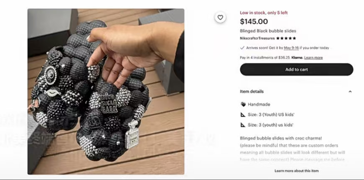卖出145美元的“丑拖鞋”由此而来。刘世奇说,这来自两方面,一面是AI,一面是选品思路。他研究了拖鞋行业的龙头品牌,它2023年的新款上有很多闪来闪去的亮片,还有2022年、2023年的行业爆款,一款紫色的拖鞋,B2B端的毛利可以在15元左右,C端售价一度飙升到59.9美元,但它的畅销周期很短,2023年底在C端9.9美元包邮也没什么人买了。