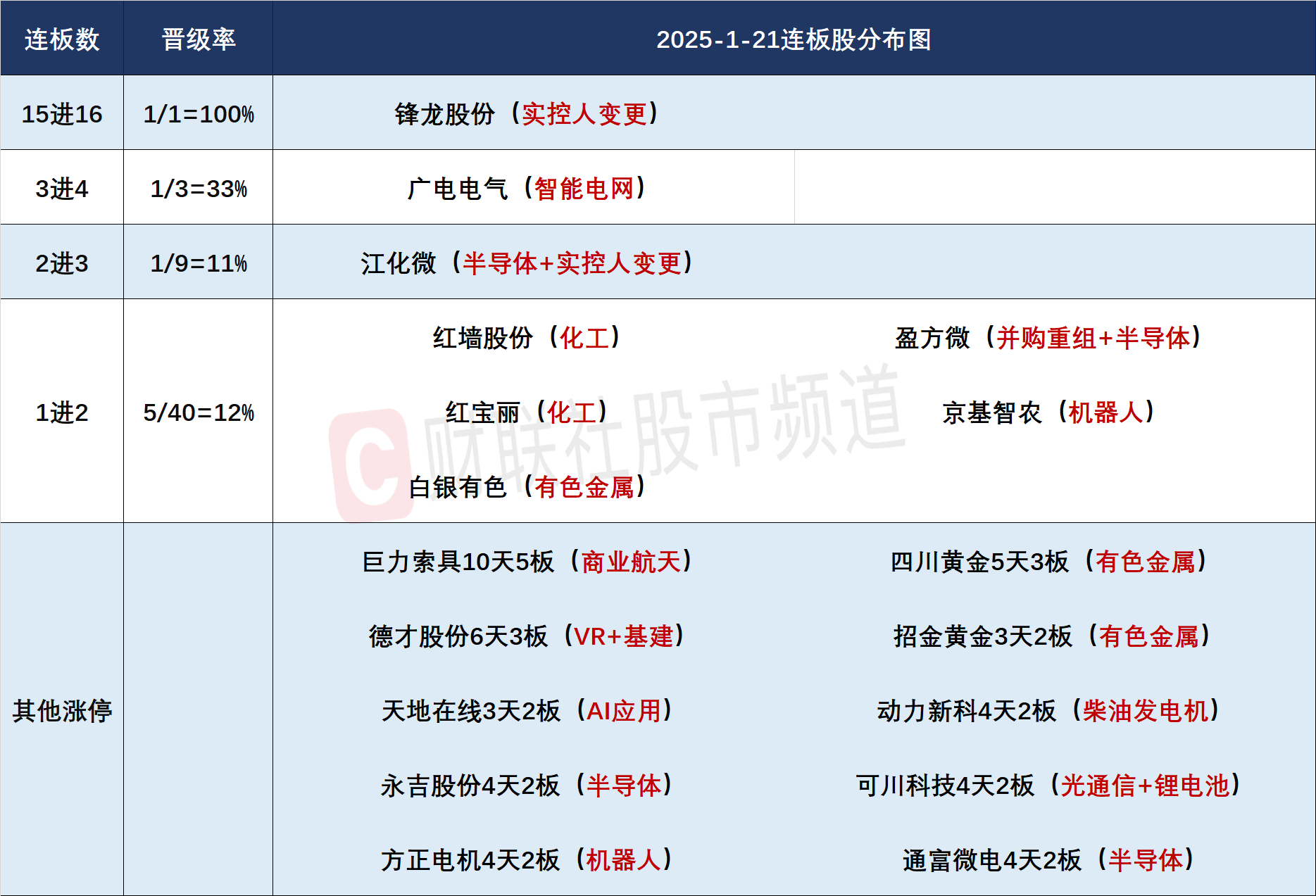 1月21日连板分析:13只连板股仅晋级3只