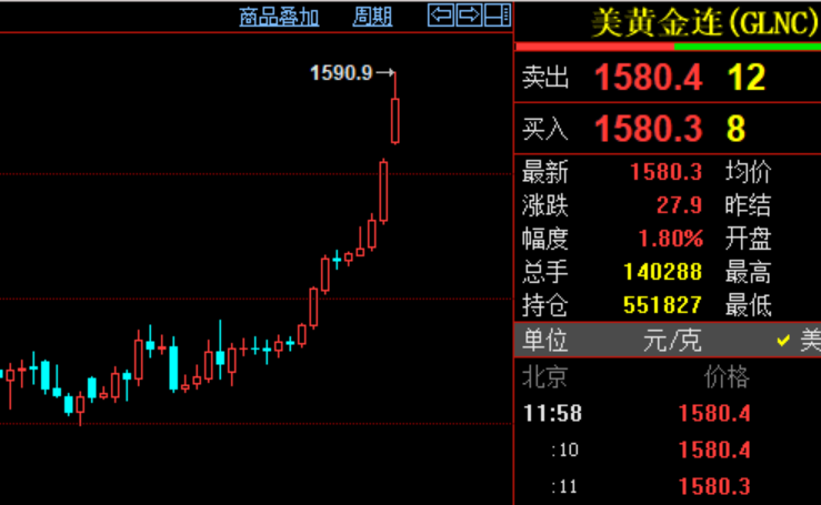 “大炮一响,黄金万两”的铁定律再度显现。伴随美伊紧张局势再升级,周一亚市早盘国际金价一跃突破1590美元/盎司关键点,成功创下近7年新高。