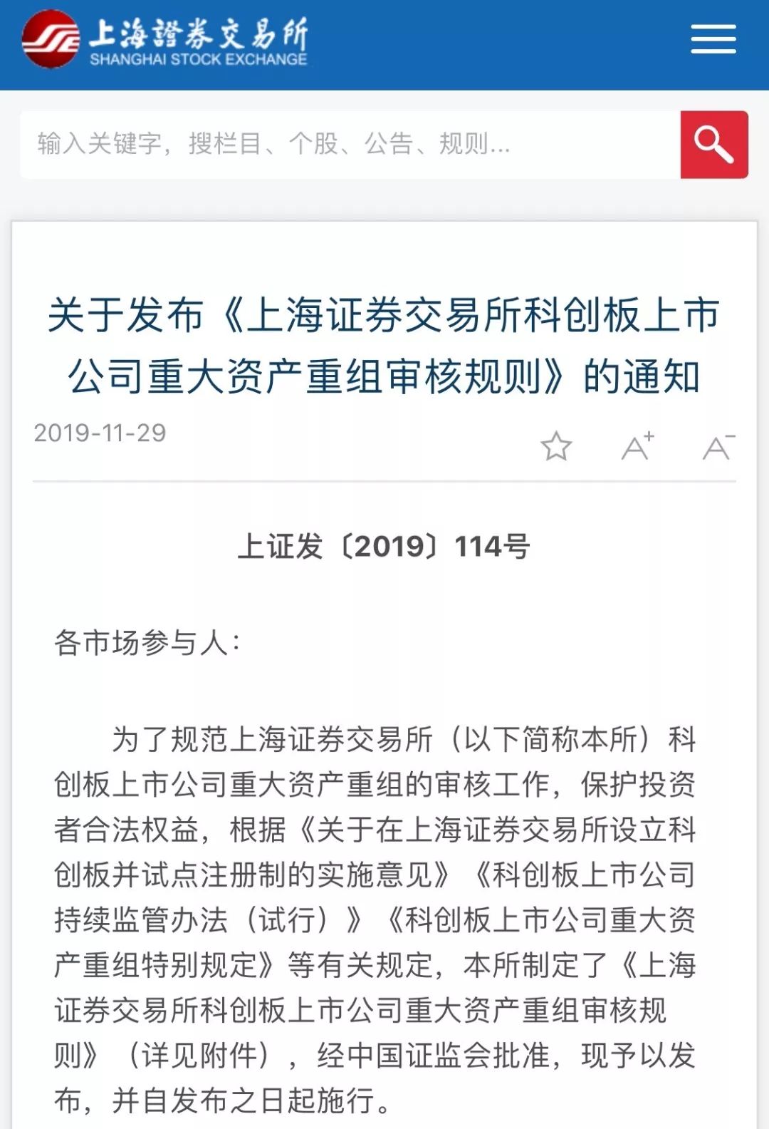 在科创板正式运行四个月之后,上交所对科创板上市公司的重大资产重组事项发布了审核规则。